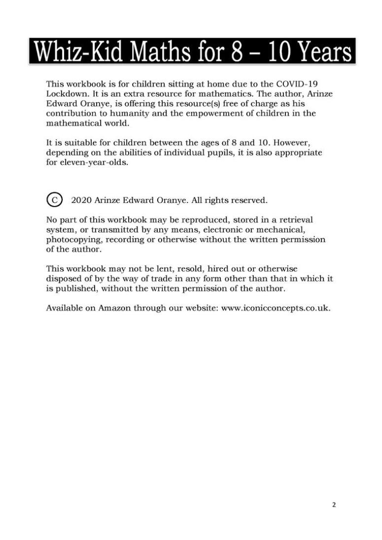 This Page is for pupils that are homeschooling due to the coronavirus pandemic. This Lockdown Resource aims to keep children occupied while a solution is found for the ravaging virus. This page will be updated when necessary. This workbook is for pupils aged 8 - 10 years and it is free. Parents/guardian may download the pdf version of the workbook for their children.